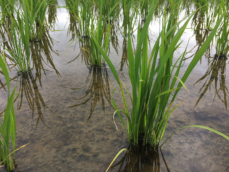 2回目の田植えから1ヶ月経ちました。写真はこしいぶきの苗です。状況的にはゆきん子舞が一番悪いです。わりといつもそうなんですが、田植えの時に根の張りが一番悪く使う枚数の調節が上手くいかずに後半足りなくなって、後半に植える田んぼはギリギリで植える感じで1つに1本植えてある感じで茎数もなぜかあんまり増えなくて今でも水面が目立って見える状態です。最初のほうは写真のこしいぶきとそれほど変わらないです。でも収穫量は一番多い。不思議なことに。