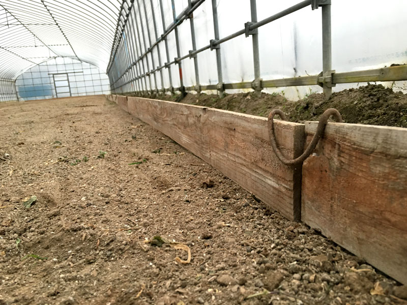 写真は今日のビニールハウスの中です。昨日から家の近くにあるビニールハウス2つを均して木の枠を配置しました。均すのはアルミの梯子に重りのコンクリをのせて引っ張るっていう野球部がタイヤを引っ張るイメージと一緒です。その後に、木の枠を前後は45㎝あけて、左右は50㎝あけて木の板を置いて針金をおさえて固定していきます。