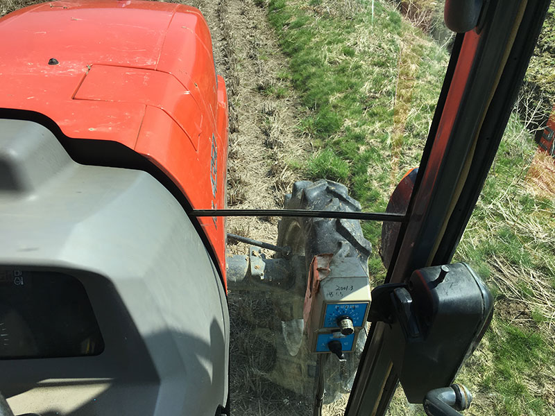 下の写真は今年の機械の設定です。なんかいつもより土がいっぱい出てくるみたいでメモリの場所が去年と違います。チェーンが伸びて変わってきたのかもです。