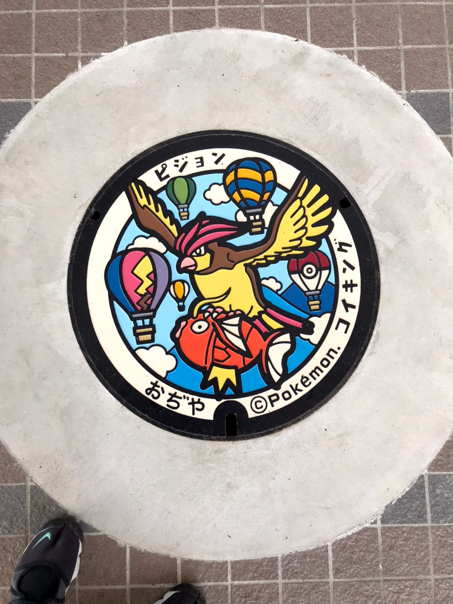 子どものダンスが小千谷であって、その体育館のマンホールがこれです。1つだけですがカラフルで色もきれいでした。ただ、コイキングにとって、とてもまずい状況なのではないのかっていうのが気になります。