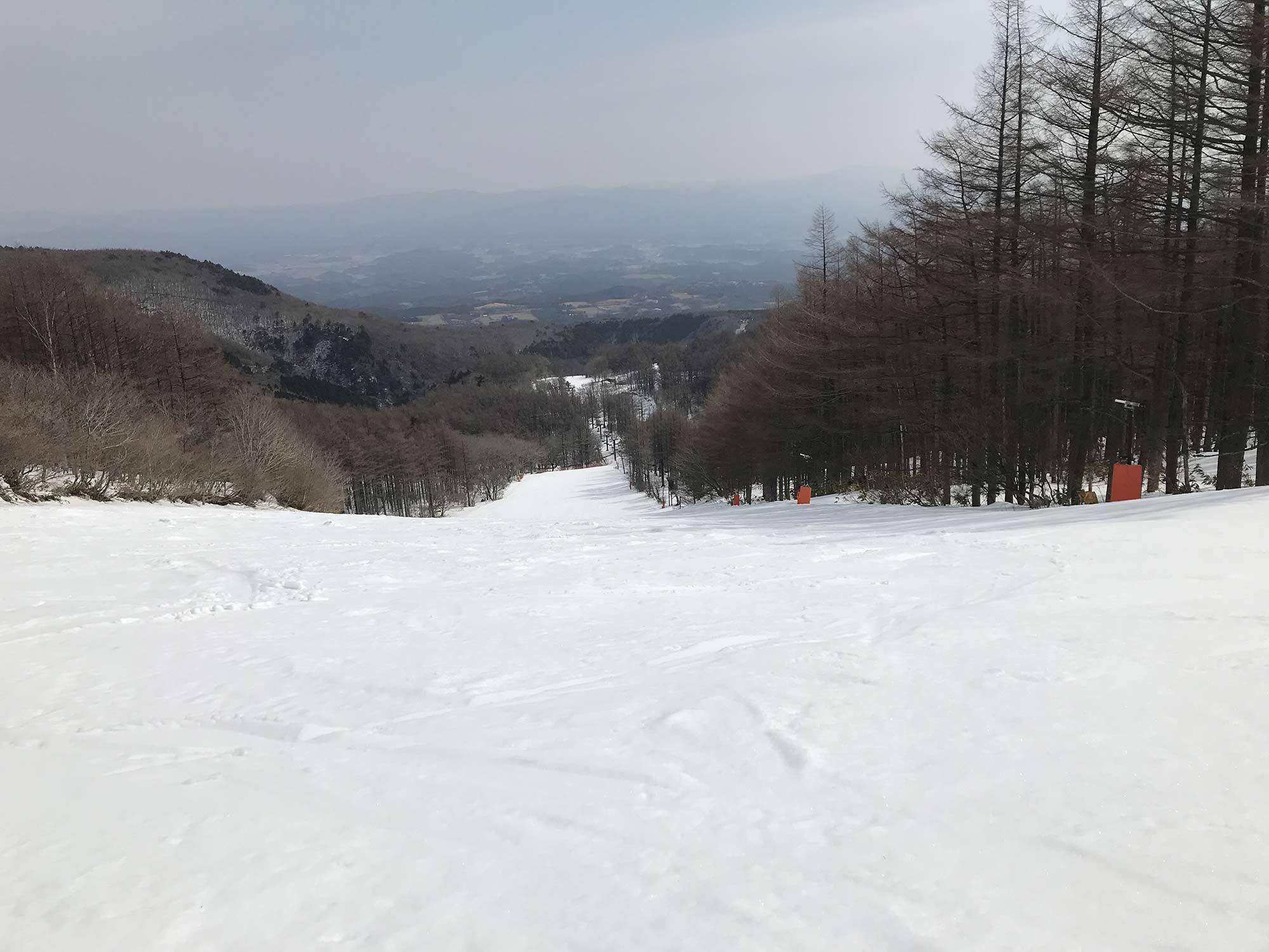 下の写真は帰りに滑ったスキー場です。リフトが動いてないところのコースなので自分だけの貸切です。