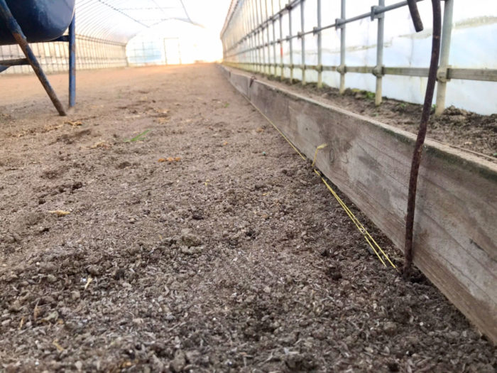 今更ですが去年の秋に新しいビニールハウスを建てて、今年稲の苗を置いた時の端の長さとかのメモです。ほうれん草の後で広めにスペースとりましたが、それでもこのくらいあったほうがゆとりがあってよかった気もします。